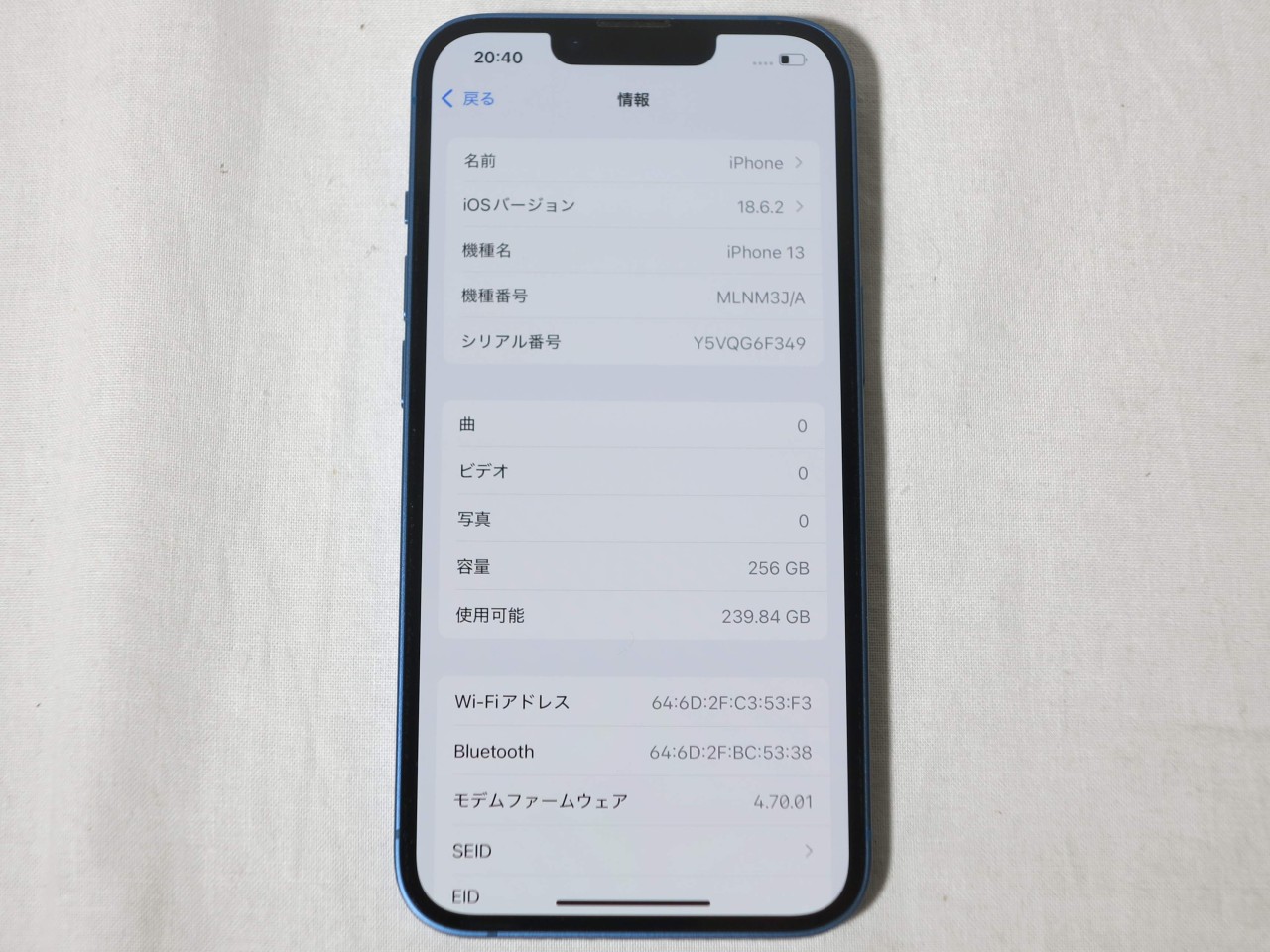 APPLE [USED]u058728 iPhone13 256GB SIMフリー [ブルー] の 商品仕様1:
