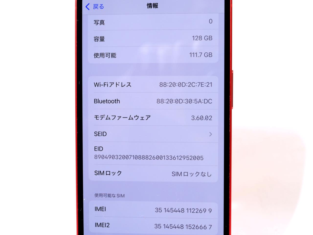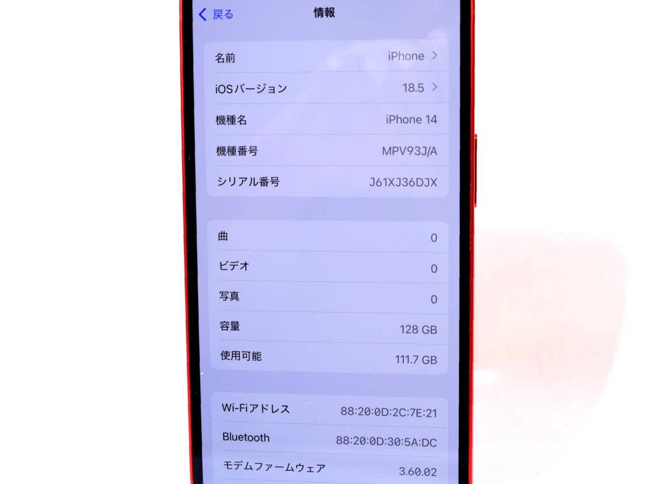 APPLE [USED]u058758 iPhone14 (PRODUCT)RED 128GB SIMフリー [レッド] の 商品仕様1: