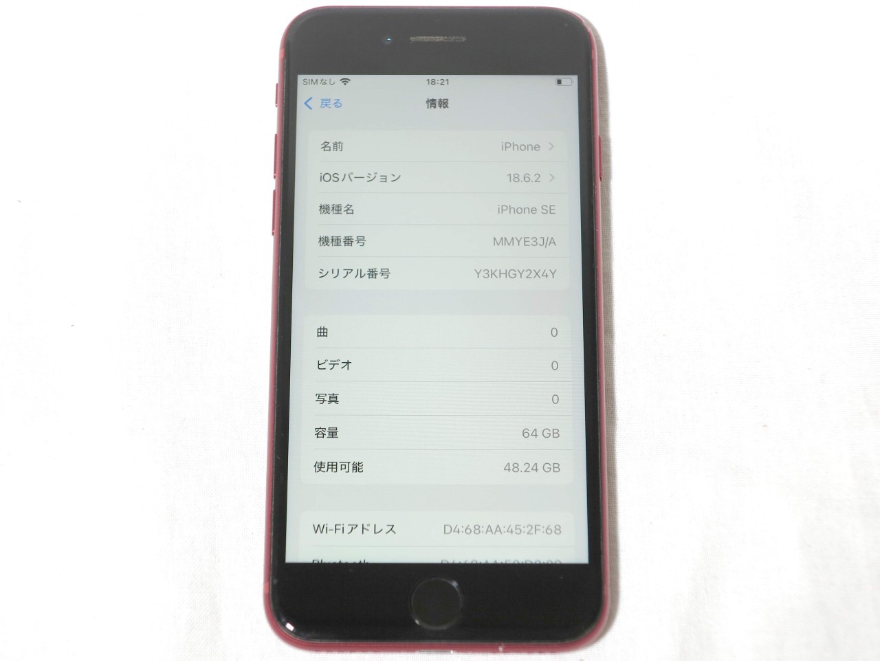 APPLE [USED]u058760 iPhoneSE 3rd 64GB SIMフリー [レッド] の 商品仕様1:
