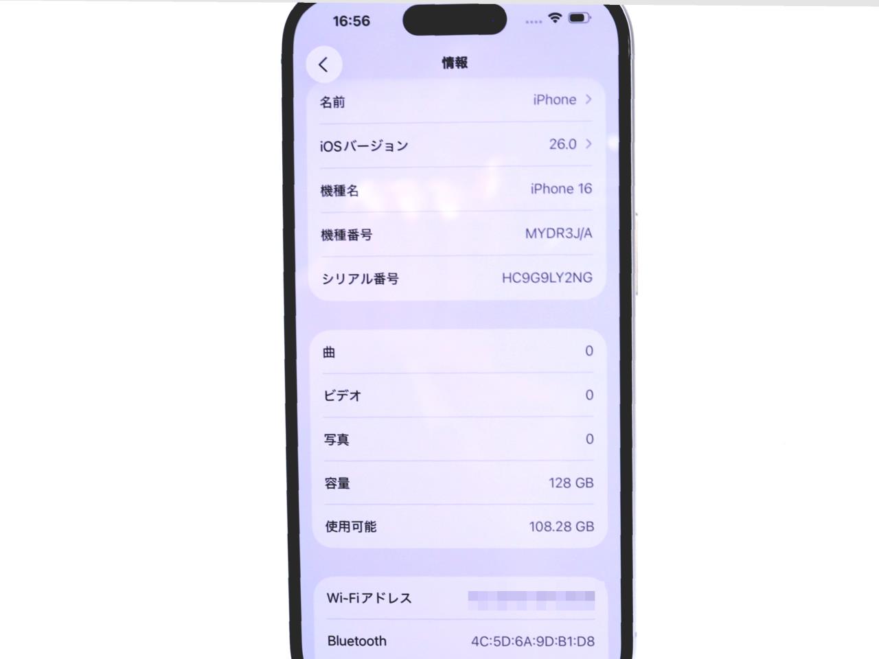 APPLE [USED]u058808 iPhone16 128GB SIMフリー [ホワイト] の 商品仕様1: