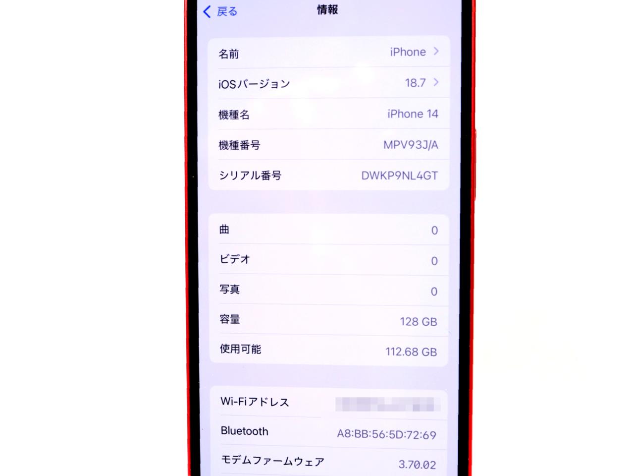 APPLE [USED]u058820 iPhone14 128GB SIMフリー [レッド] の 商品仕様1: