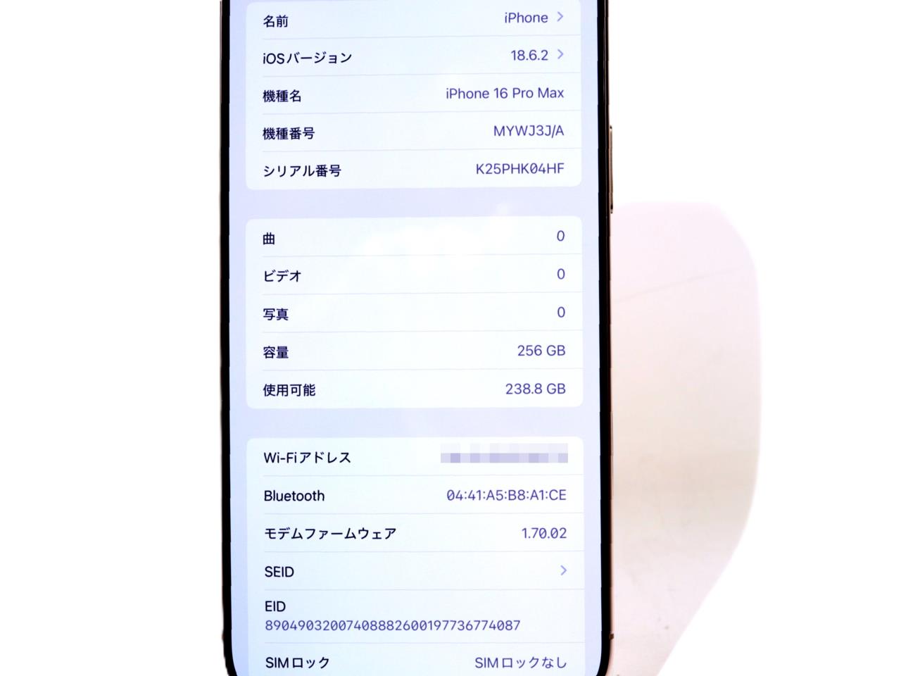 - [USED]u058827 iPhone16 Pro Max 256GB SIMフリー [デザートチタニウム]