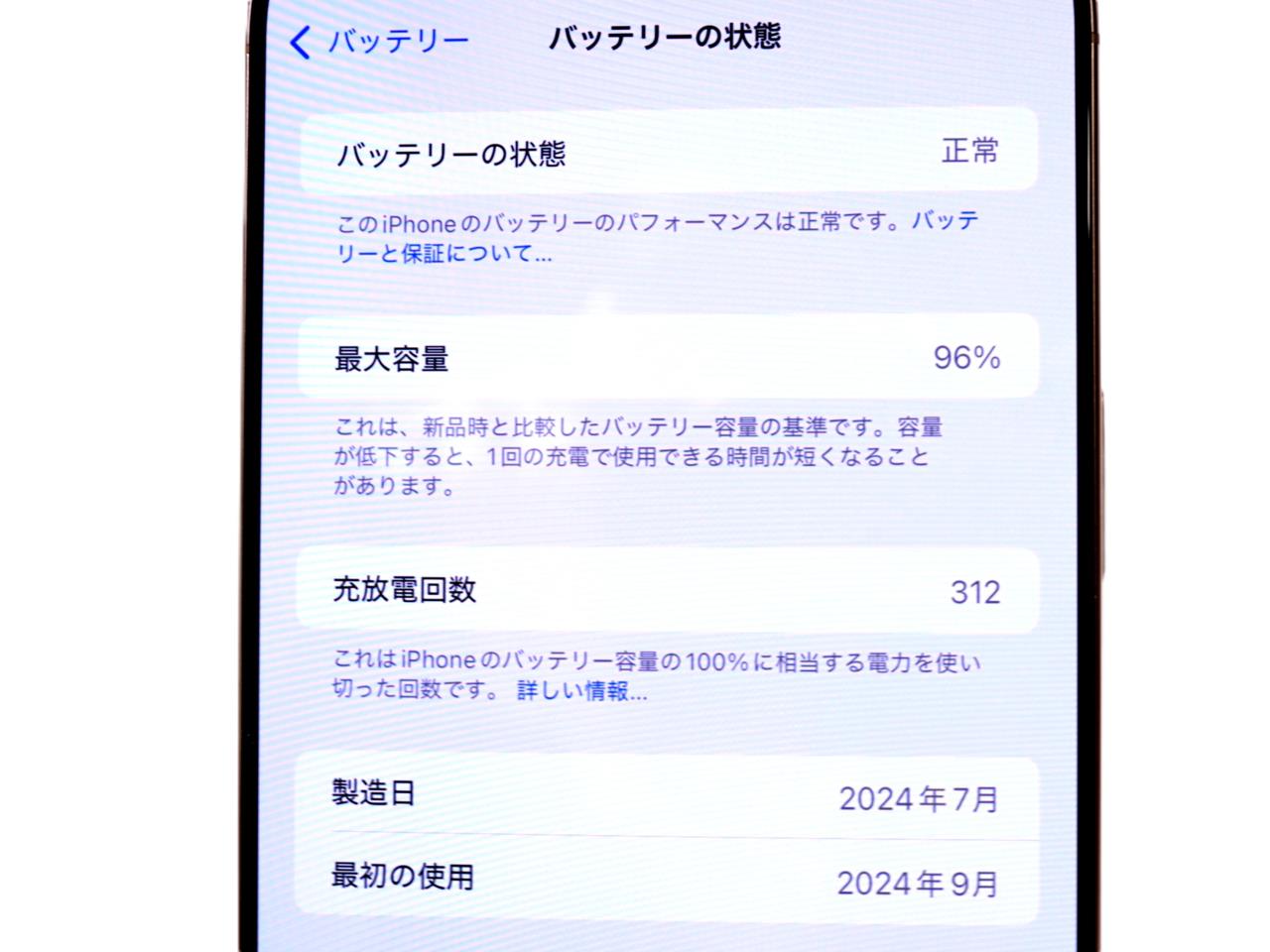 バッテリー最大容量表示=96%です。 IMEIチェック=各キャリア【-】