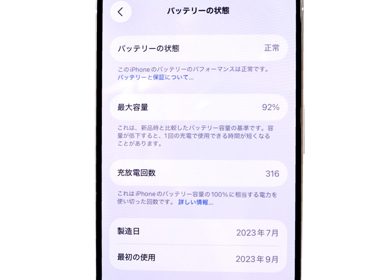 バッテリー最大容量=92%です。 IMEIチェック=各キャリア【-】