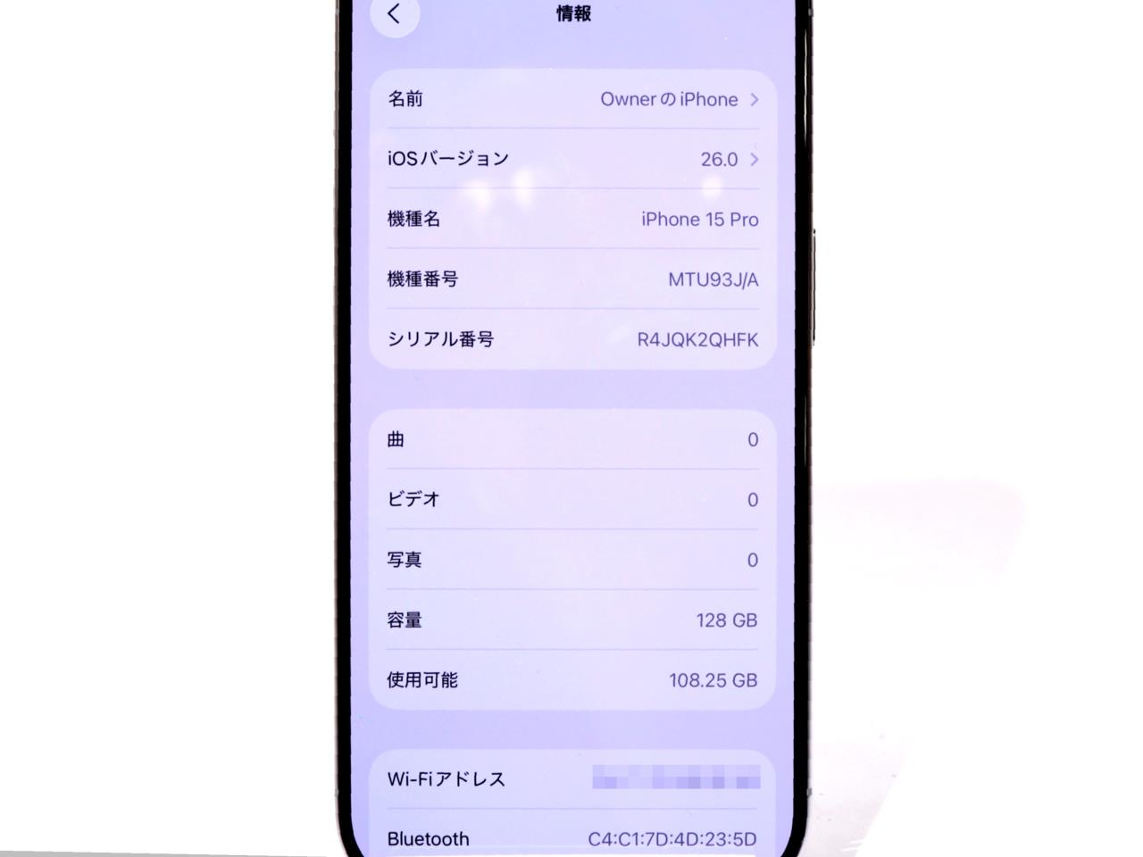 APPLE [USED]u058846 iPhone15 Pro 128GB [ナチュラルチタニウム] の 商品仕様1: