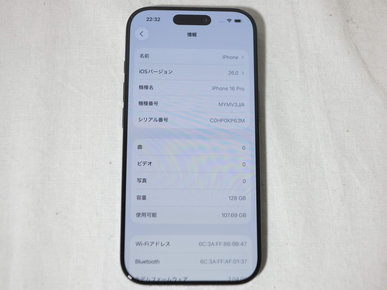 APPLE [USED]u058852 iPhone16 Pro 128GB SIMフリー [ブラックチタニウム] の 商品仕様1: