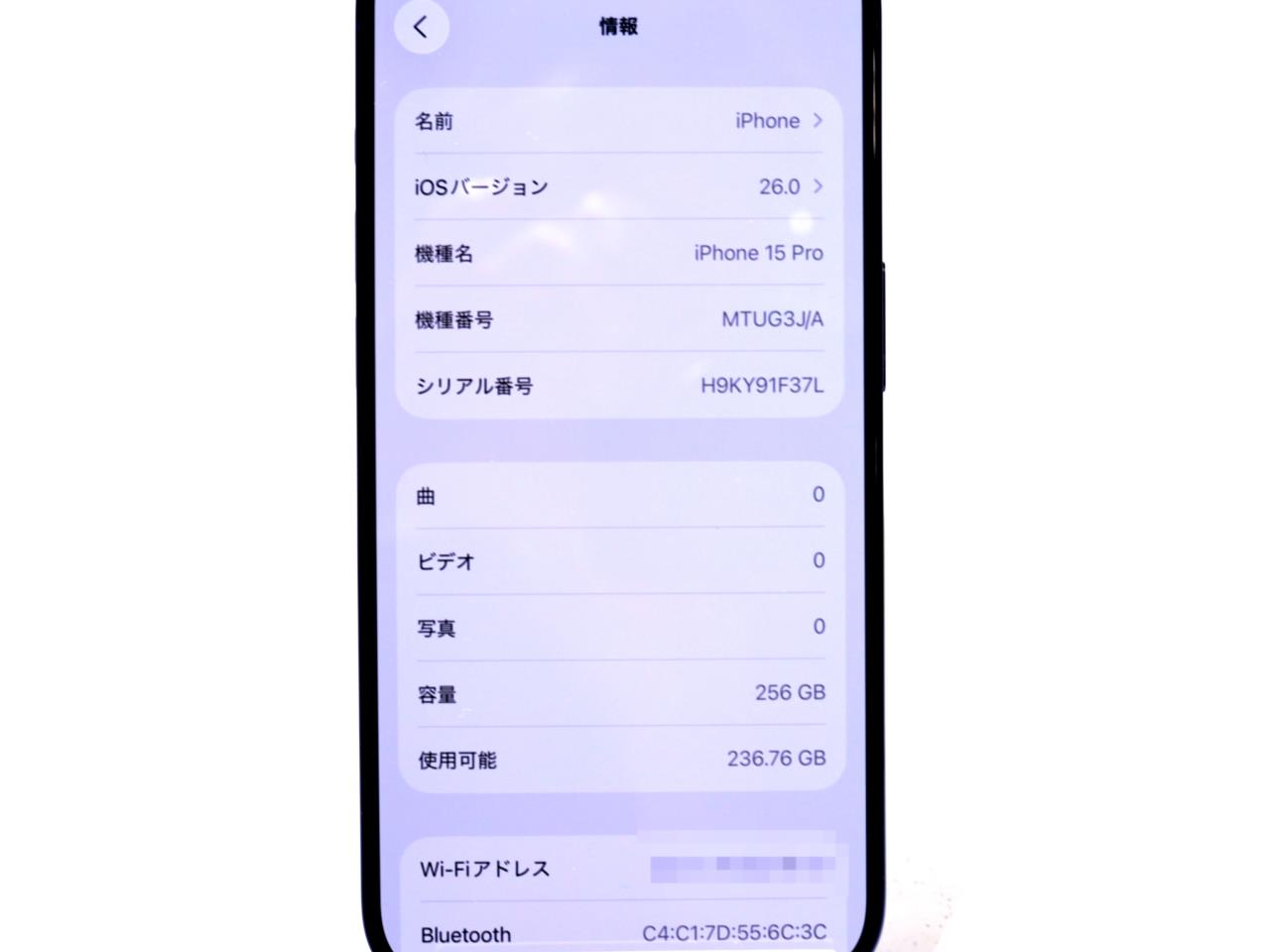APPLE [USED]u058853 iPhone15 Pro 256GB SIMフリー [ブルーチタニウム] の 商品仕様1: