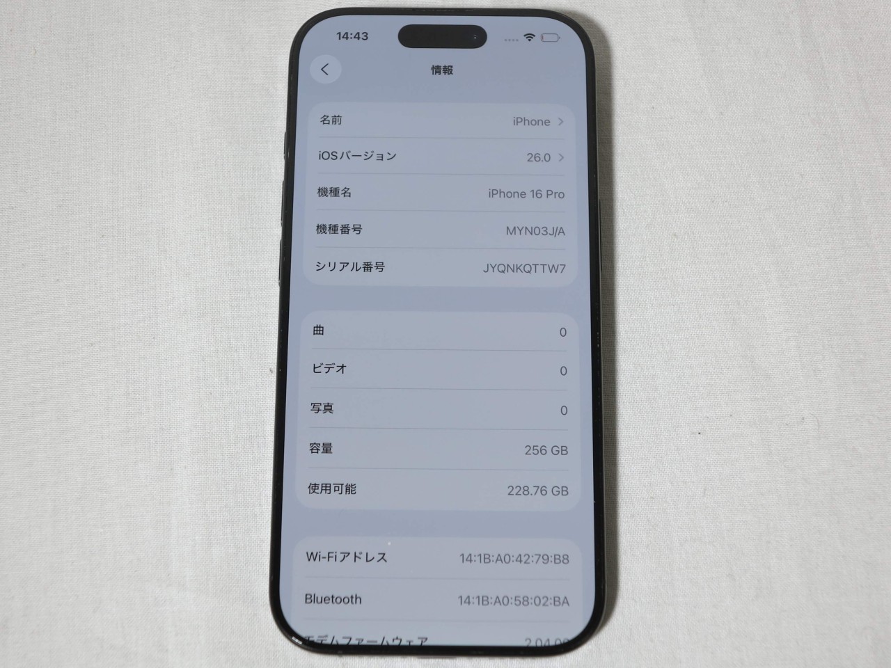 APPLE [USED]u058856 iPhone16 Pro 256GB SIMフリー [ブラックチタニウム] の 商品仕様1:
