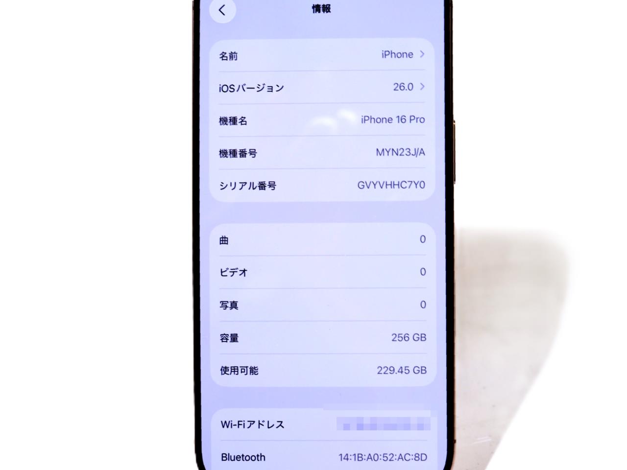 APPLE [USED]u058887 iPhone16 Pro 256GB SIMフリー [デザートチタニウム] の 商品仕様1: