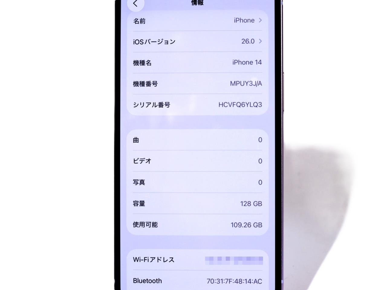 APPLE [USED]u058888 iPhone14 128GB SIMフリー [パープル] の 商品仕様1: