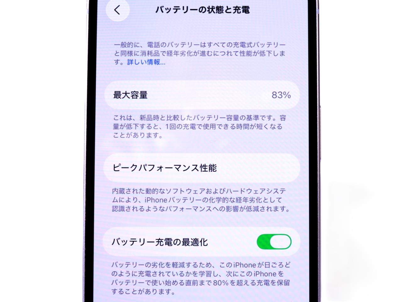 バッテリー最大容量=83%です。