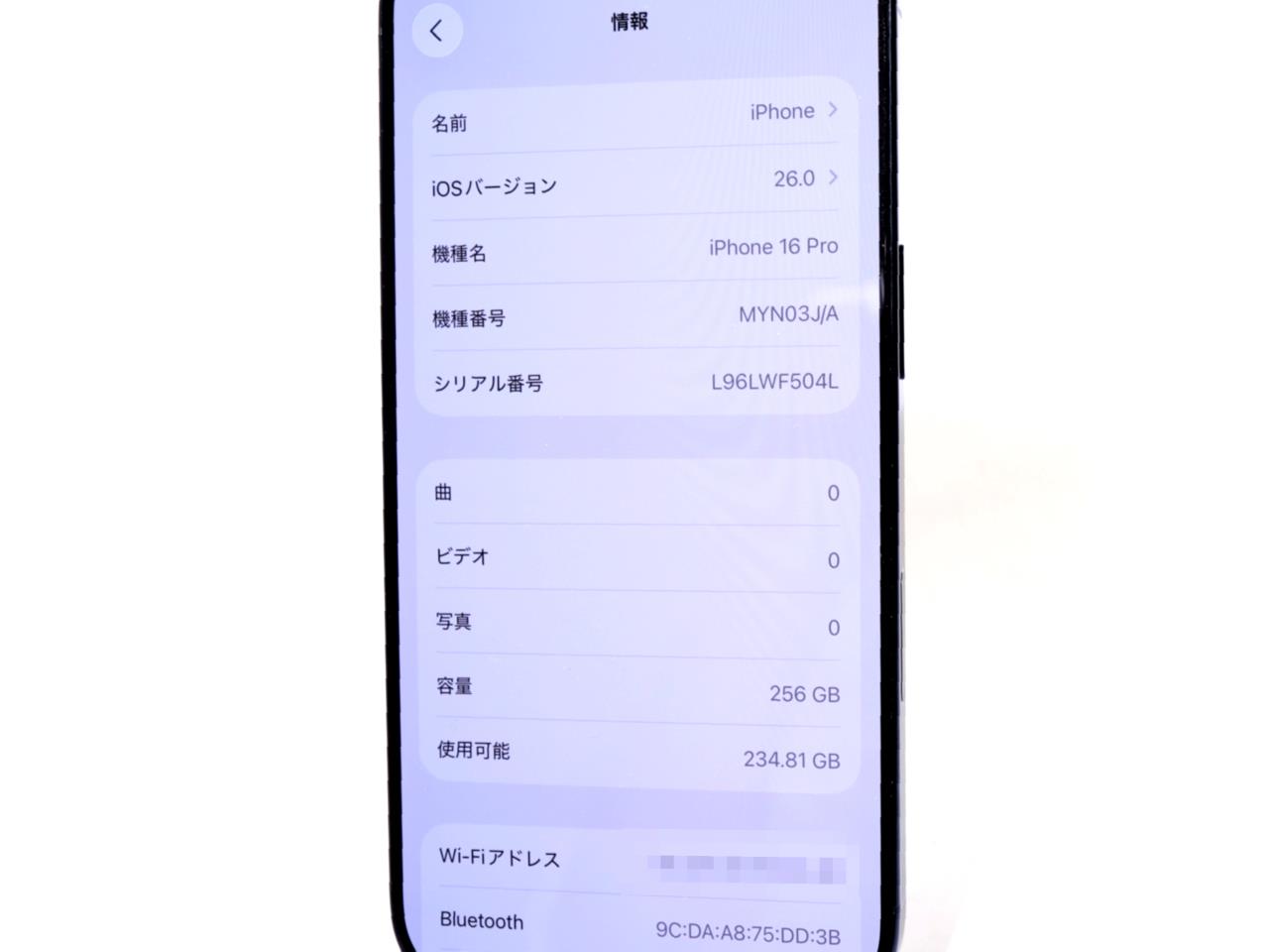 - [USED]u058890 iPhone16 Pro 256GB SIMフリー [ブラックチタニウム]