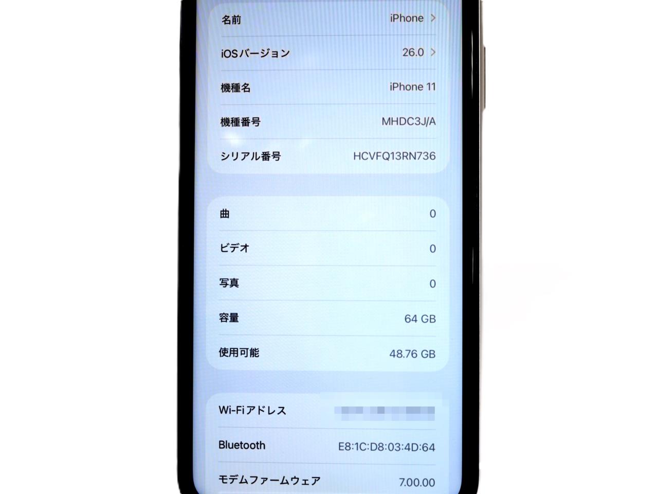 APPLE [USED]u058893 iPhone11 64GB SIMフリー [ホワイト] の 商品仕様1: