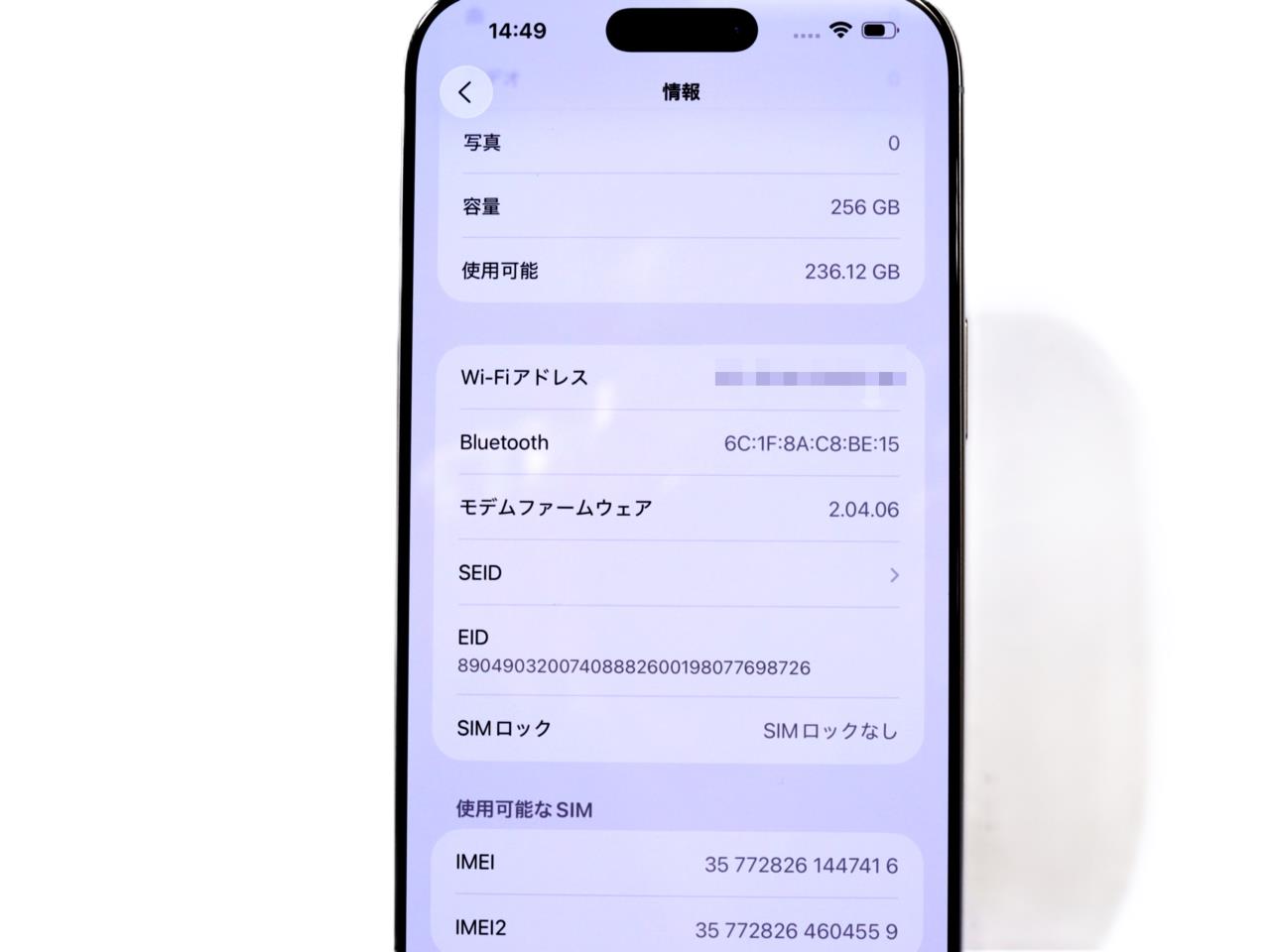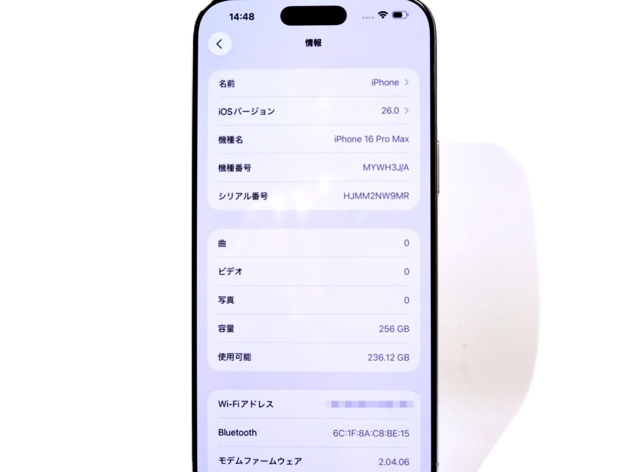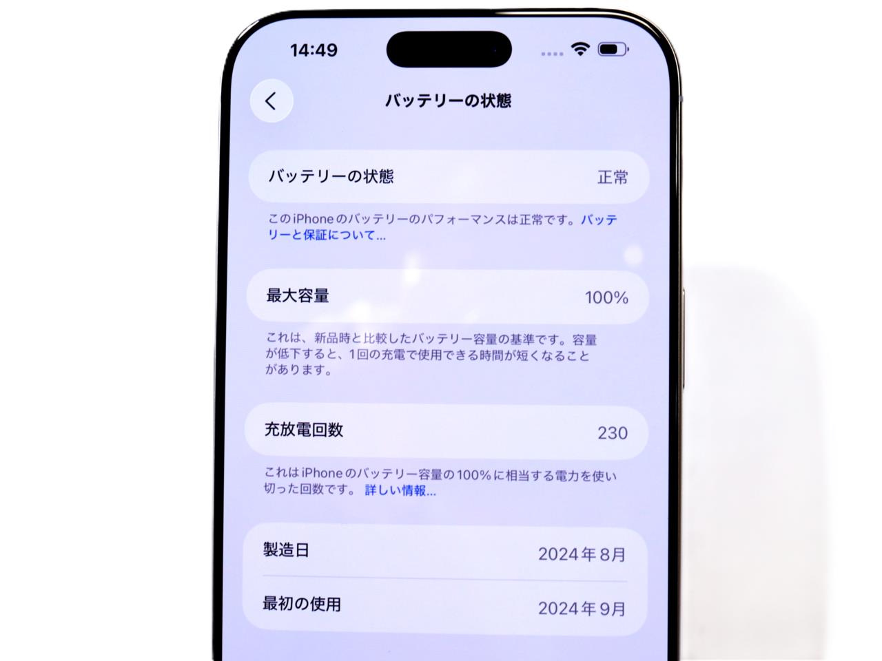 APPLE [USED]u058900 iPhone16 Pro Max 256GB [ホワイトチタニウム] の 商品仕様1: