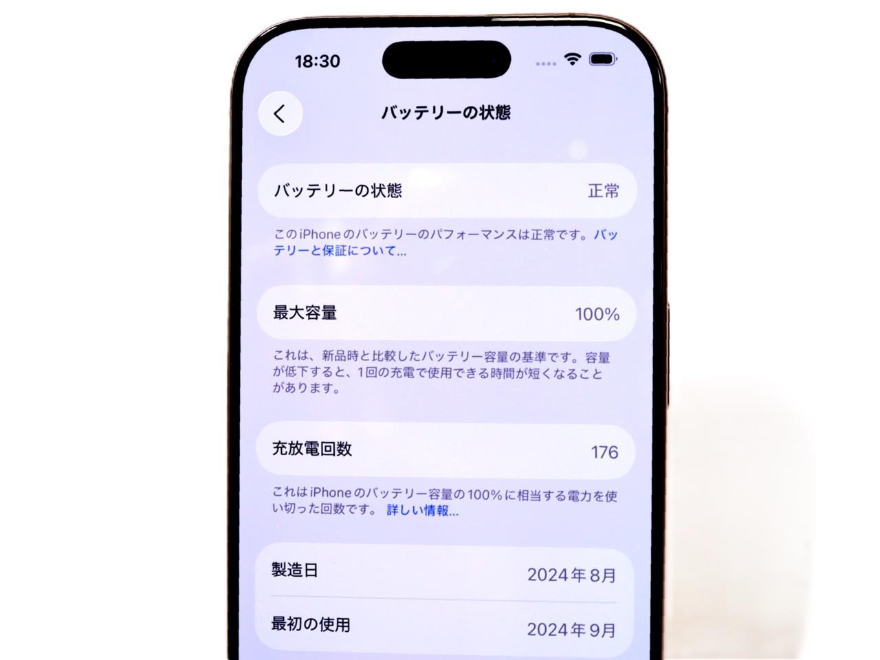 バッテリー最大容量=100%です。 IMEIチェック=各キャリア【-】
