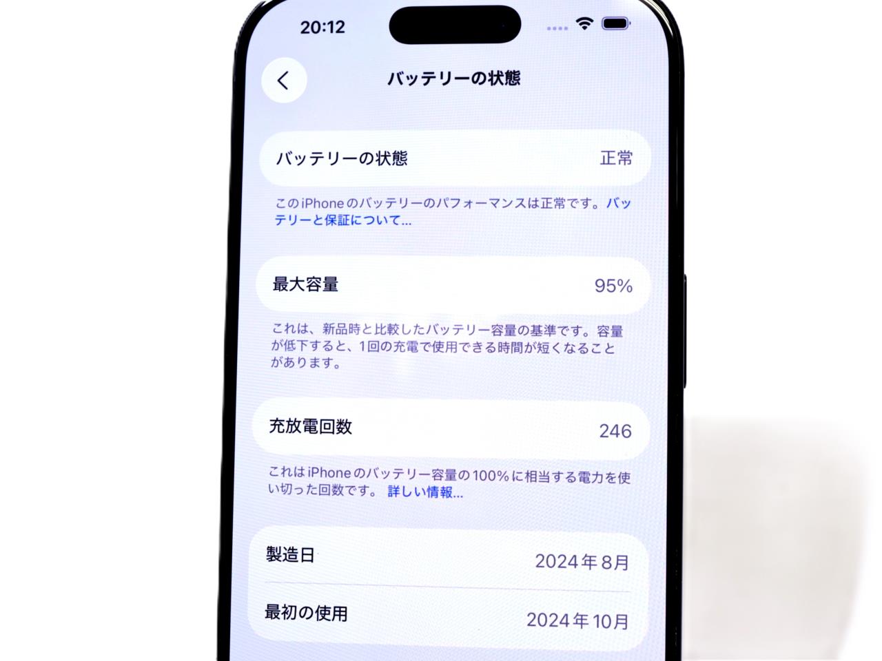 バッテリー最大容量=95%です。 IMEIチェック=各キャリア【-】