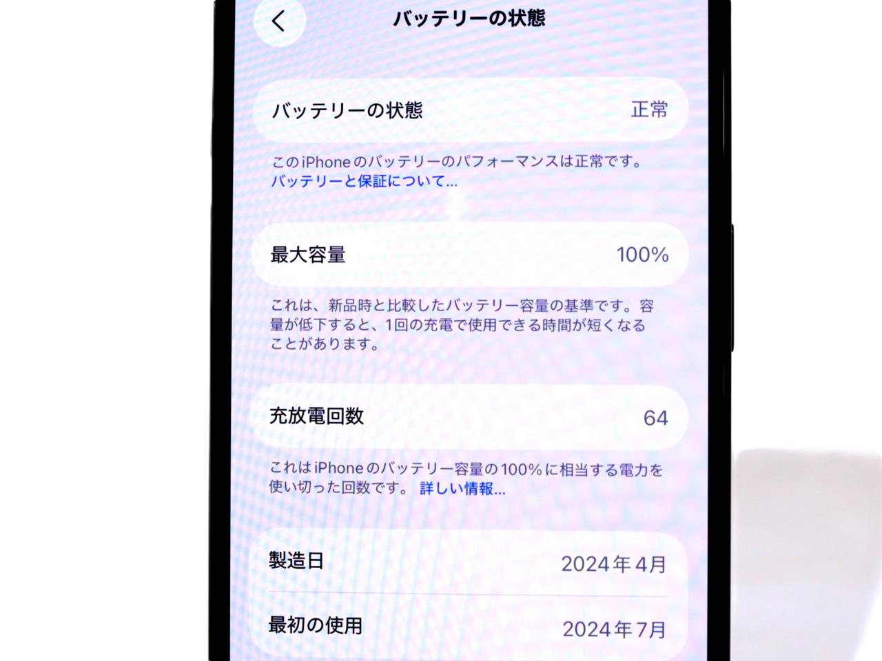 バッテリー最大容量表示=100%です。
