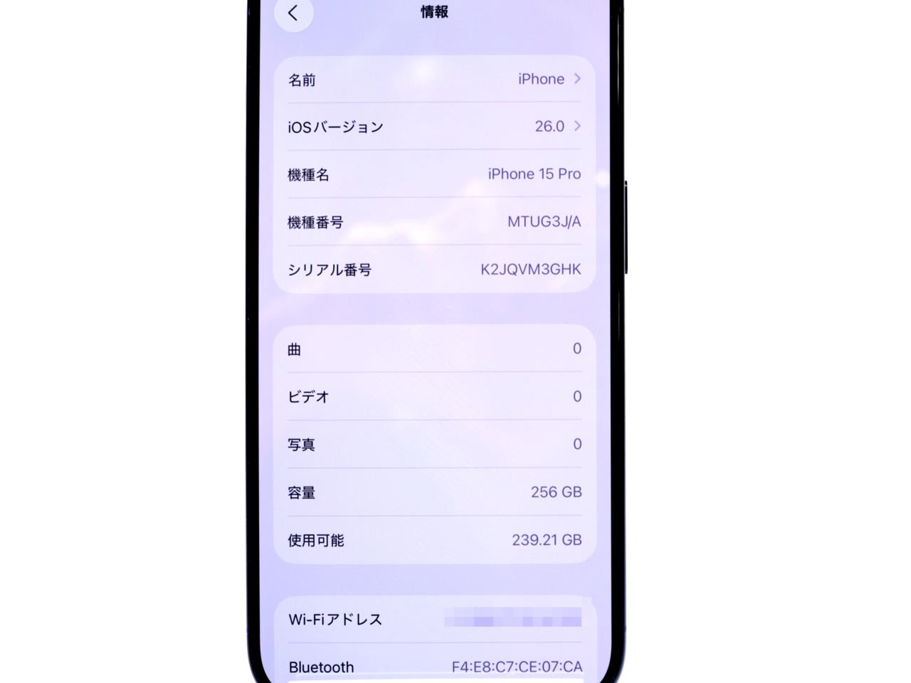 APPLE [USED]u058935 iPhone15 Pro 256GB SIMフリー [ブルーチタニウム] の 商品仕様1: