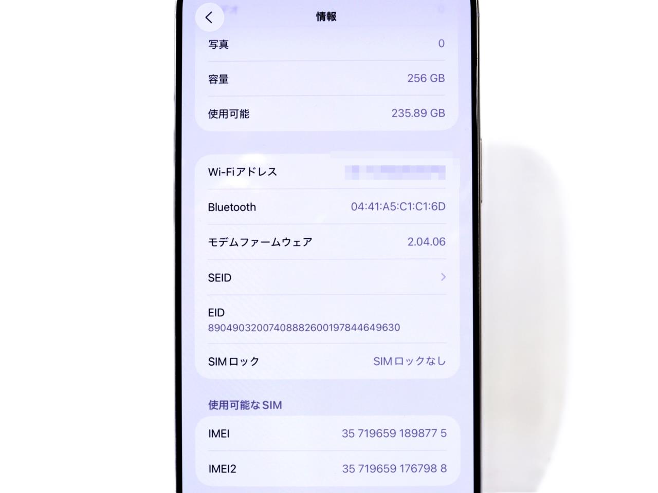 内蔵メモリ : 256GB