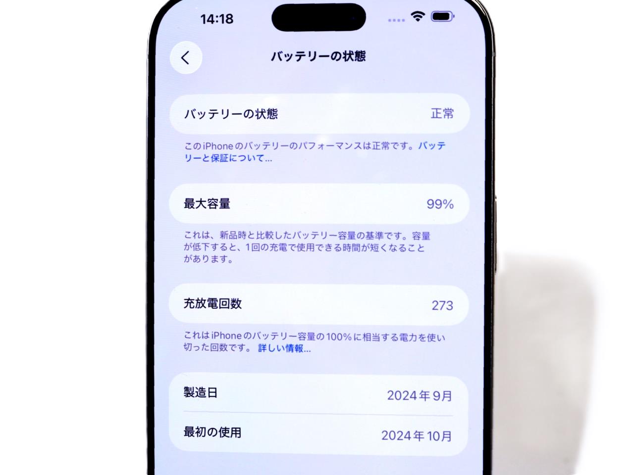 バッテリー最大容量表示=99%です。