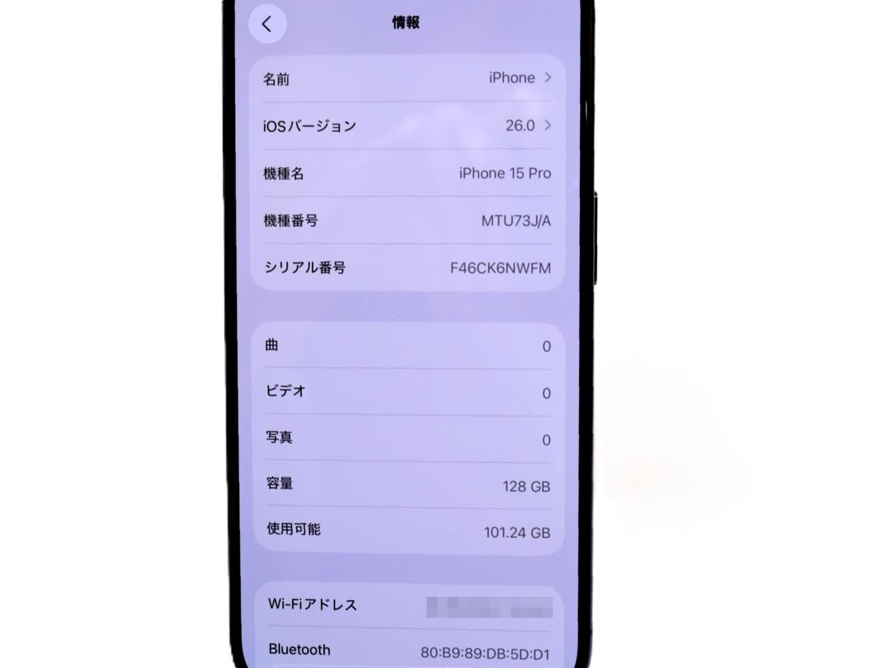 APPLE [USED]u058938 iPhone15 Pro 128GB SIMフリー [ブラックチタニウム] の 商品仕様1: