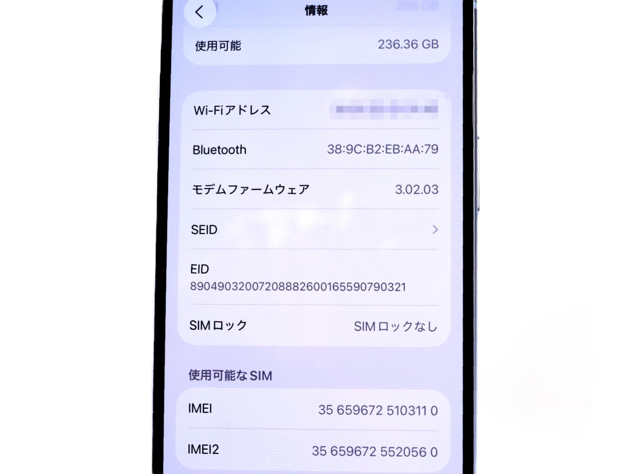 内蔵メモリ : 256GB