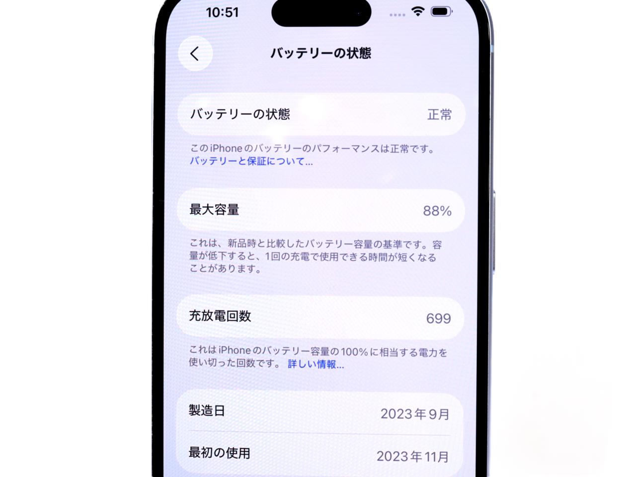 バッテリー最大容量表示=88%です。