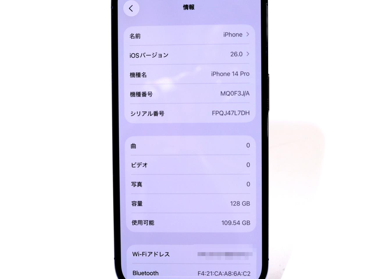 - [USED]u058943 iPhone14 Pro 128GB SIMフリー [ディープパープル]