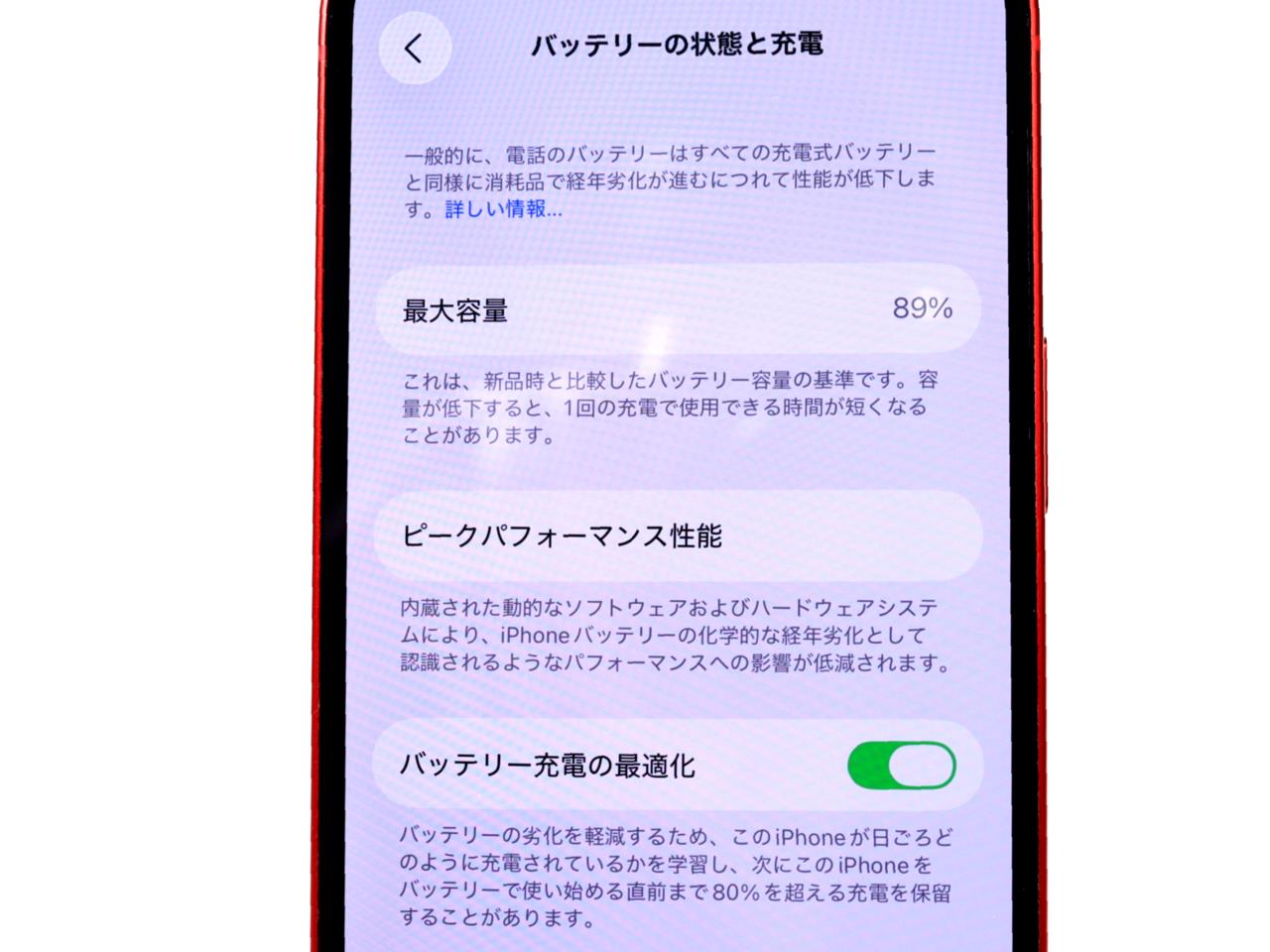 バッテリー最大容量=89%です。 香港版