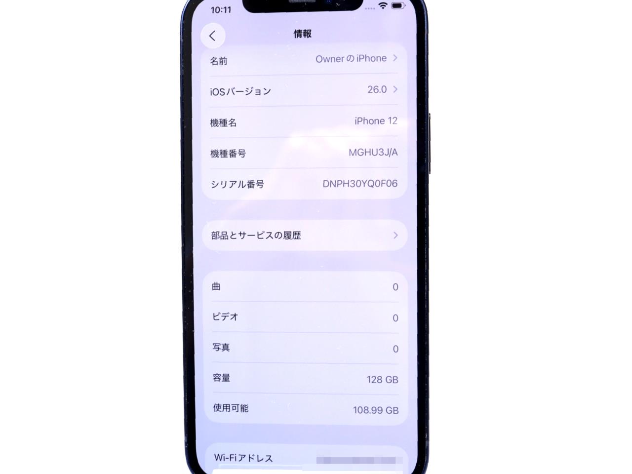 - [USED]u058950 iPhone12 128GB SIMフリー [ブラック]