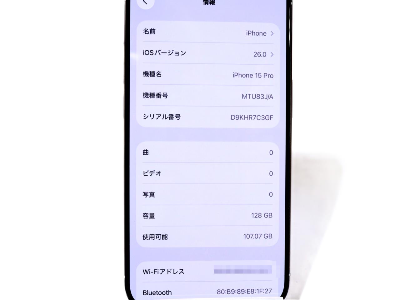 - [USED]u058954 iPhone15 Pro 128GB SIMフリー [ホワイトチタニウム]