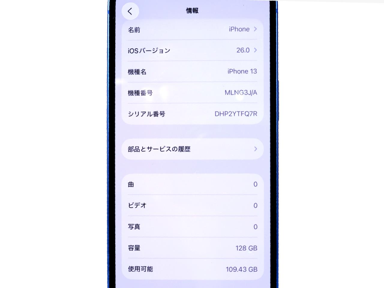 APPLE [USED]u058982 iPhone 13 128GB [ブルー] の 商品仕様1: