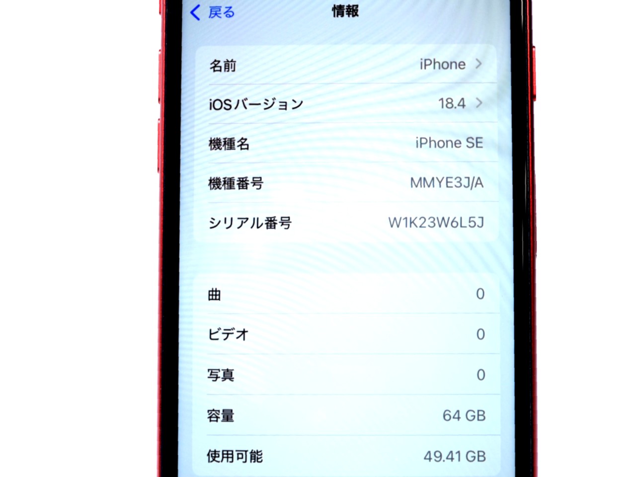 APPLE [USED]u059163 iPhone SE (第3世代) 64GB [レッド] の 商品仕様1:
