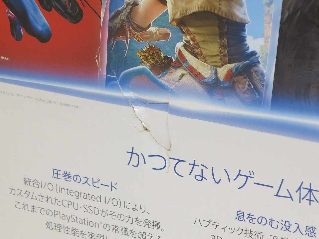 ■箱&緩衝材類(外箱に貫通穴が空いており、補修した形跡があります。)