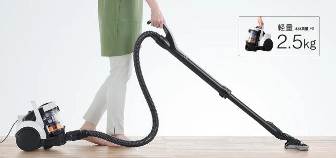 強力パワー&軽量ボディ 強い吸引力で、フローリングの溝やじゅうたんの