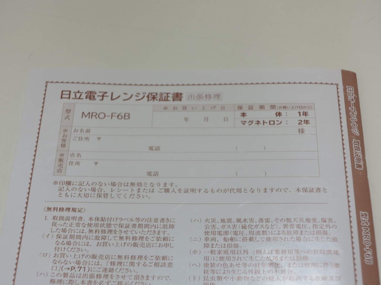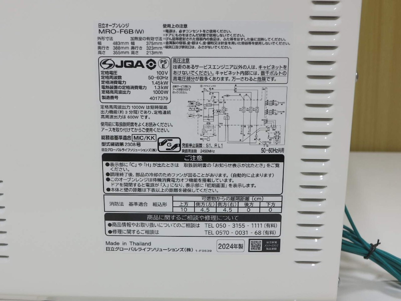 HITACHI [USED]u058555 MRO-F6B-W の 商品仕様1: