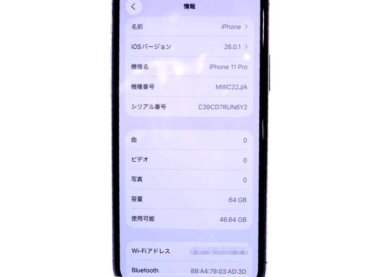 - [USED]u058809 iPhone11 Pro 64GB SIMフリー [スペースグレイ]