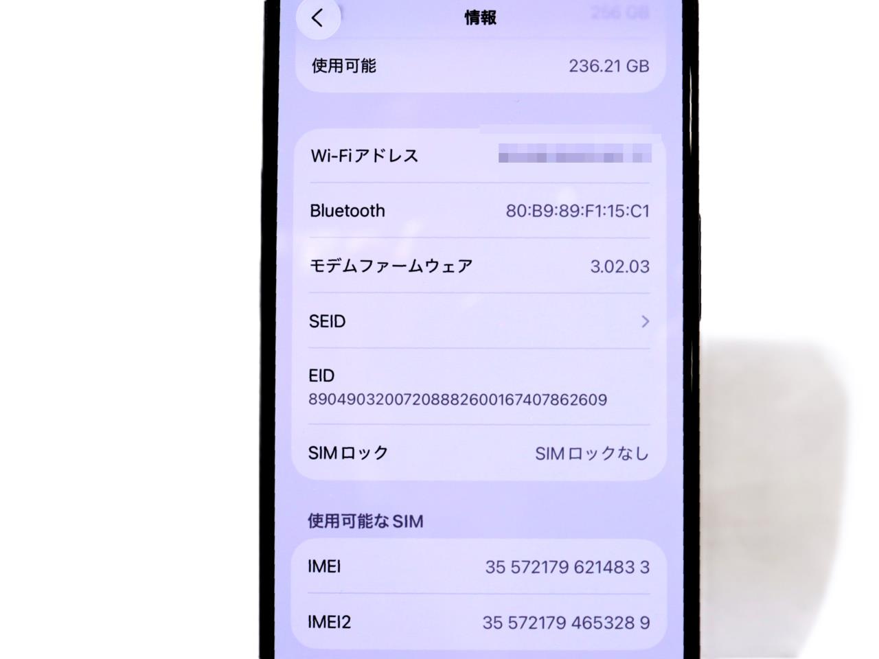 内蔵メモリ : 256GB