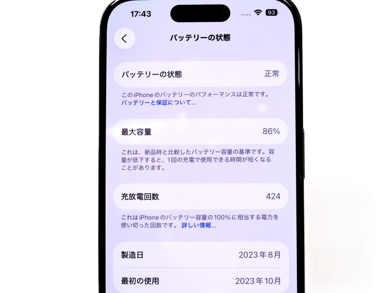 バッテリー最大容量=86%です。IMEIチェック=各キャリア【-】