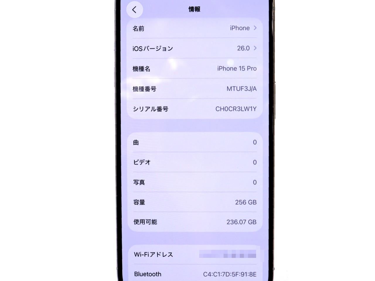 APPLE [USED]u058836 iPhone15 Pro 256GB SIMフリー [ナチュラルチタニウム] の 商品仕様1: