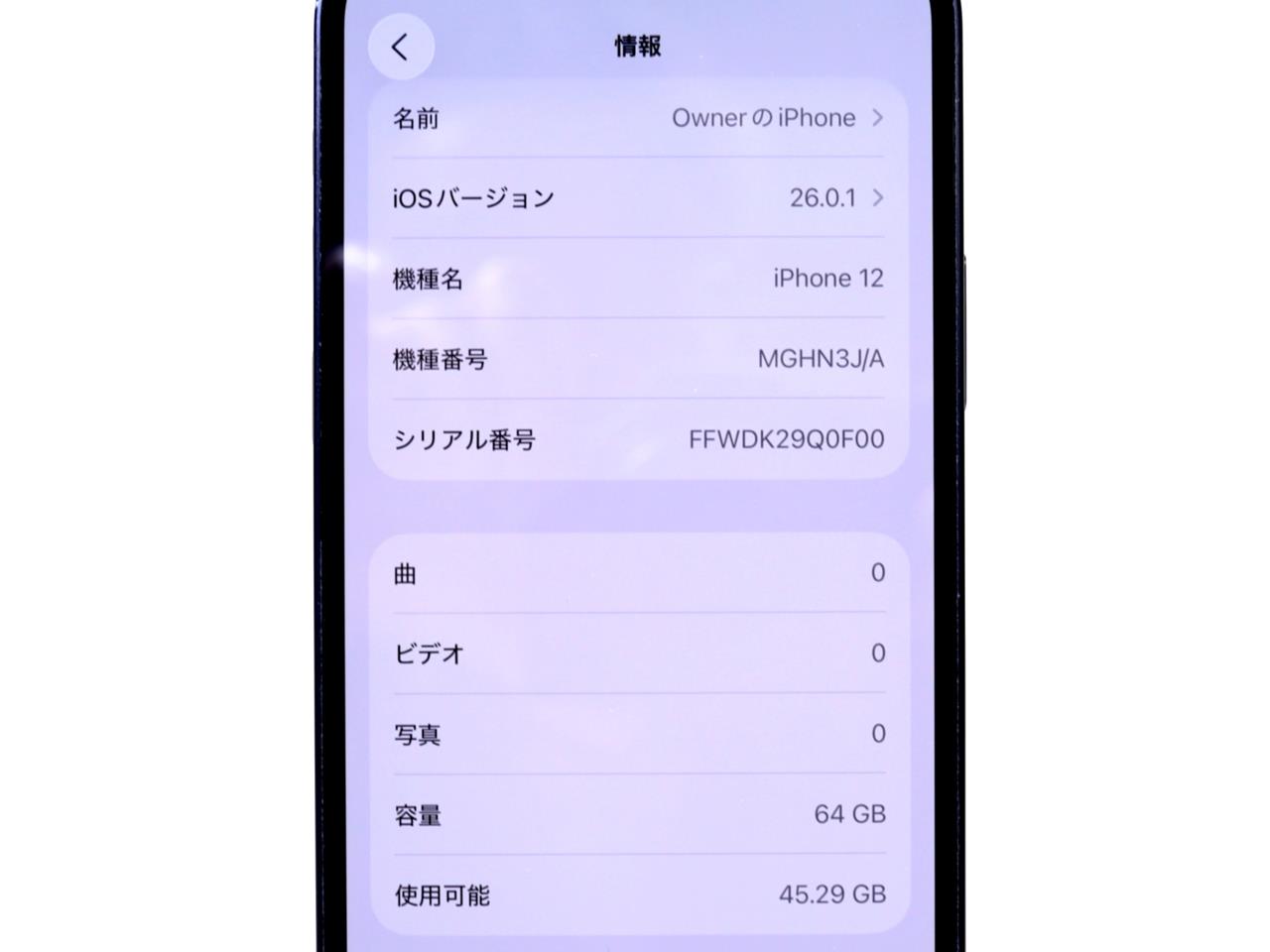 - [USED]u058847 iPhone12 64GB SIMフリー [ブラック]