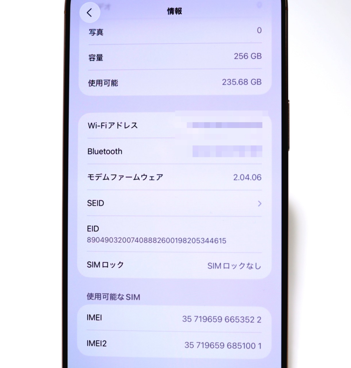 内蔵メモリ : 256GB