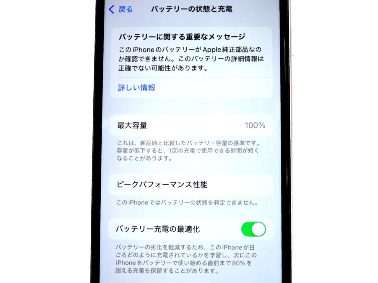 バッテリー最大容量表示=100%です。(バッテリー非純正です)