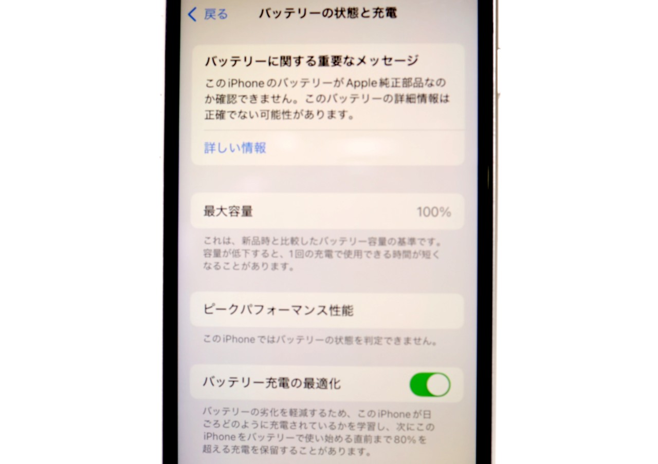 バッテリー最大容量=100% (互換バッテリー交換履歴アリ)
