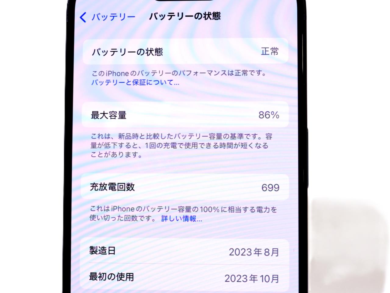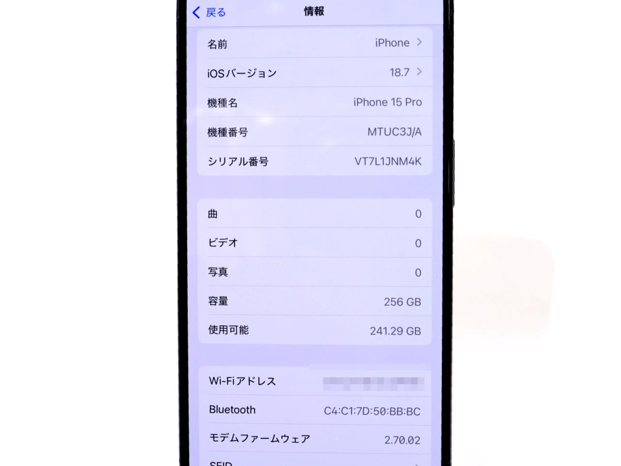 APPLE [USED]u058976 iPhone15 Pro 256GB SIMフリー [ブラックチタニウム] の 商品仕様1: