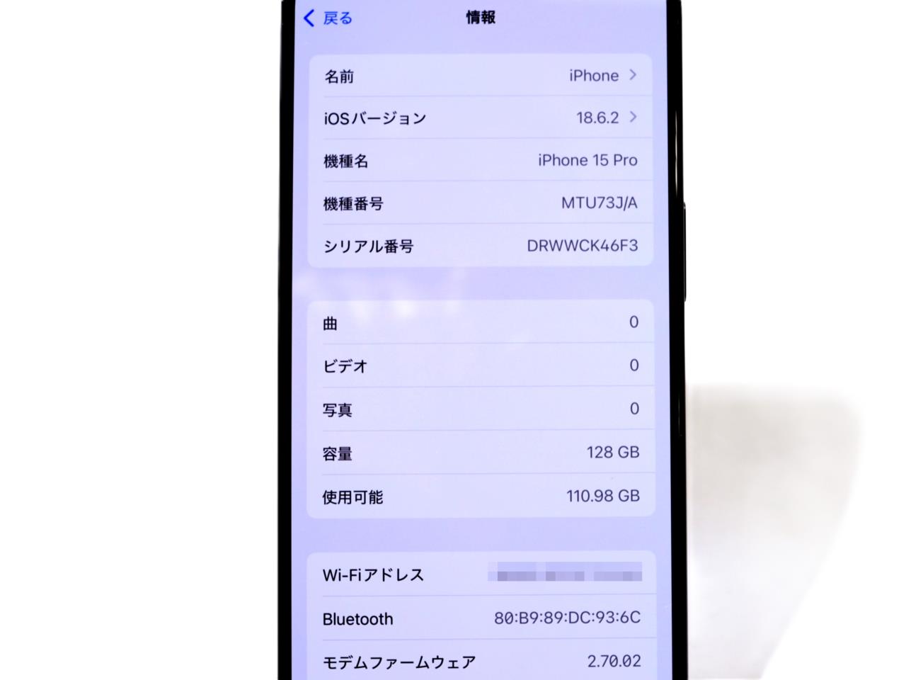 APPLE [USED]u058981 iPhone15 Pro 128GB SIMフリー [ブラックチタニウム] の 商品仕様1: