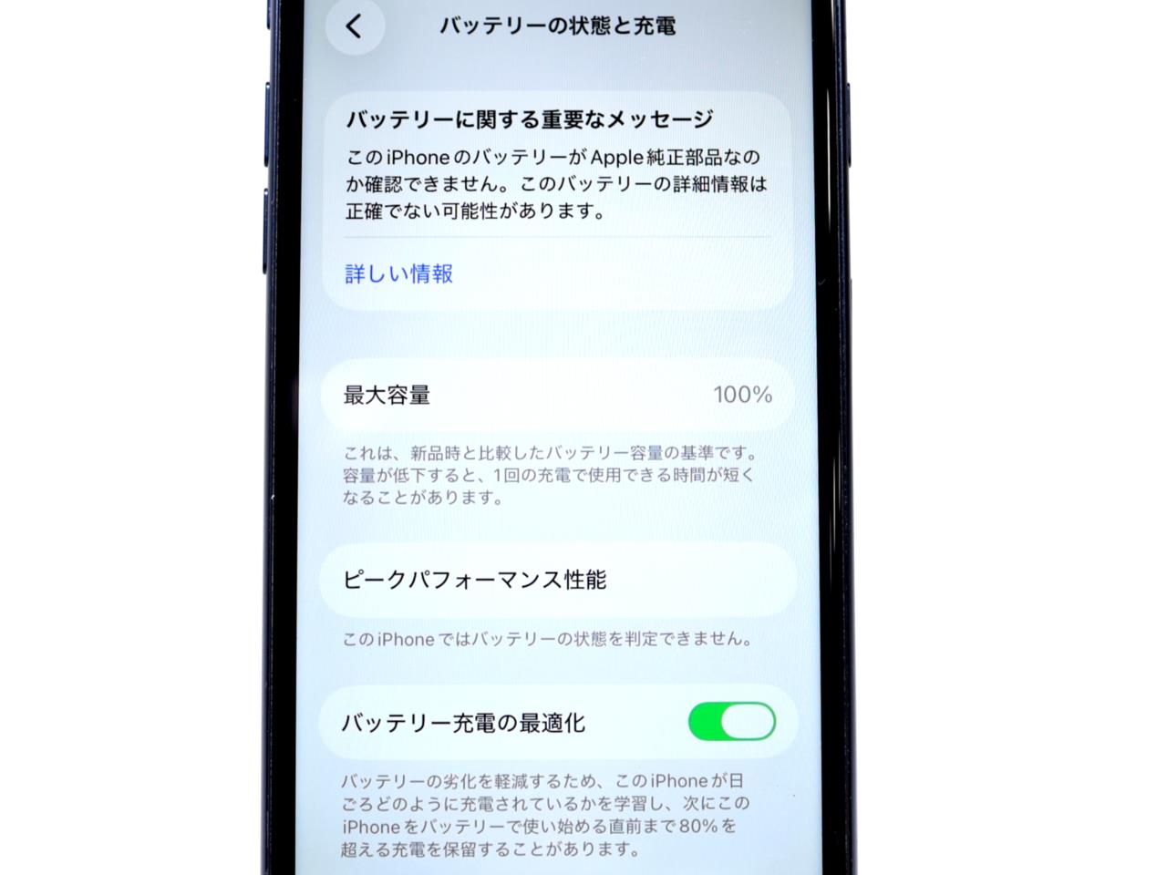 バッテリー最大容量表示=100%です。(バッテリー非純正です)