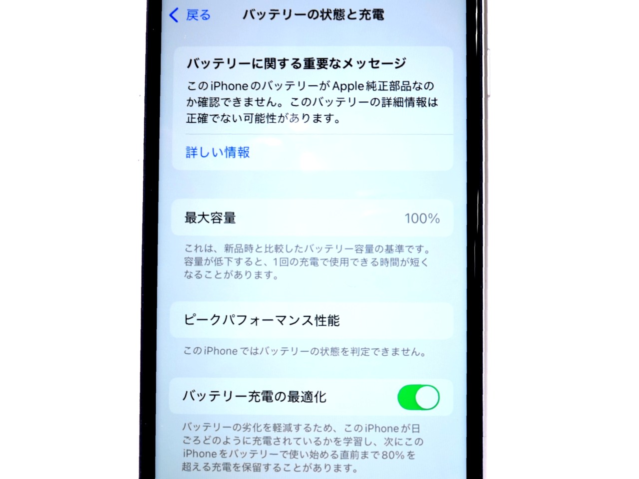 バッテリー最大容量=100%です。(互換バッテリー交換済)