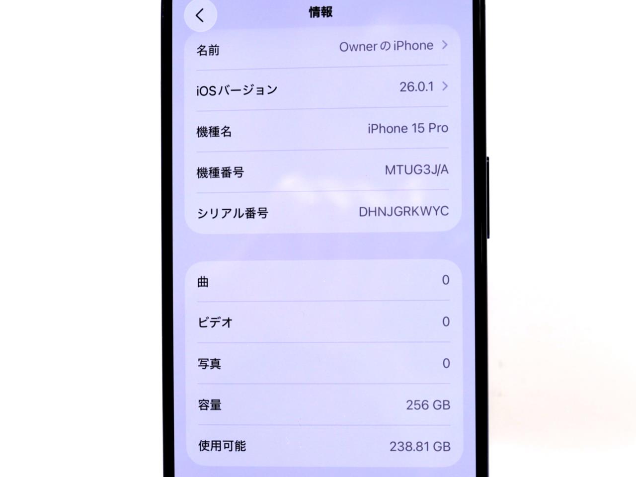 APPLE [USED]u059005 iPhone15 Pro 256GB SIMフリー [ブルーチタニウム] の 商品仕様1: