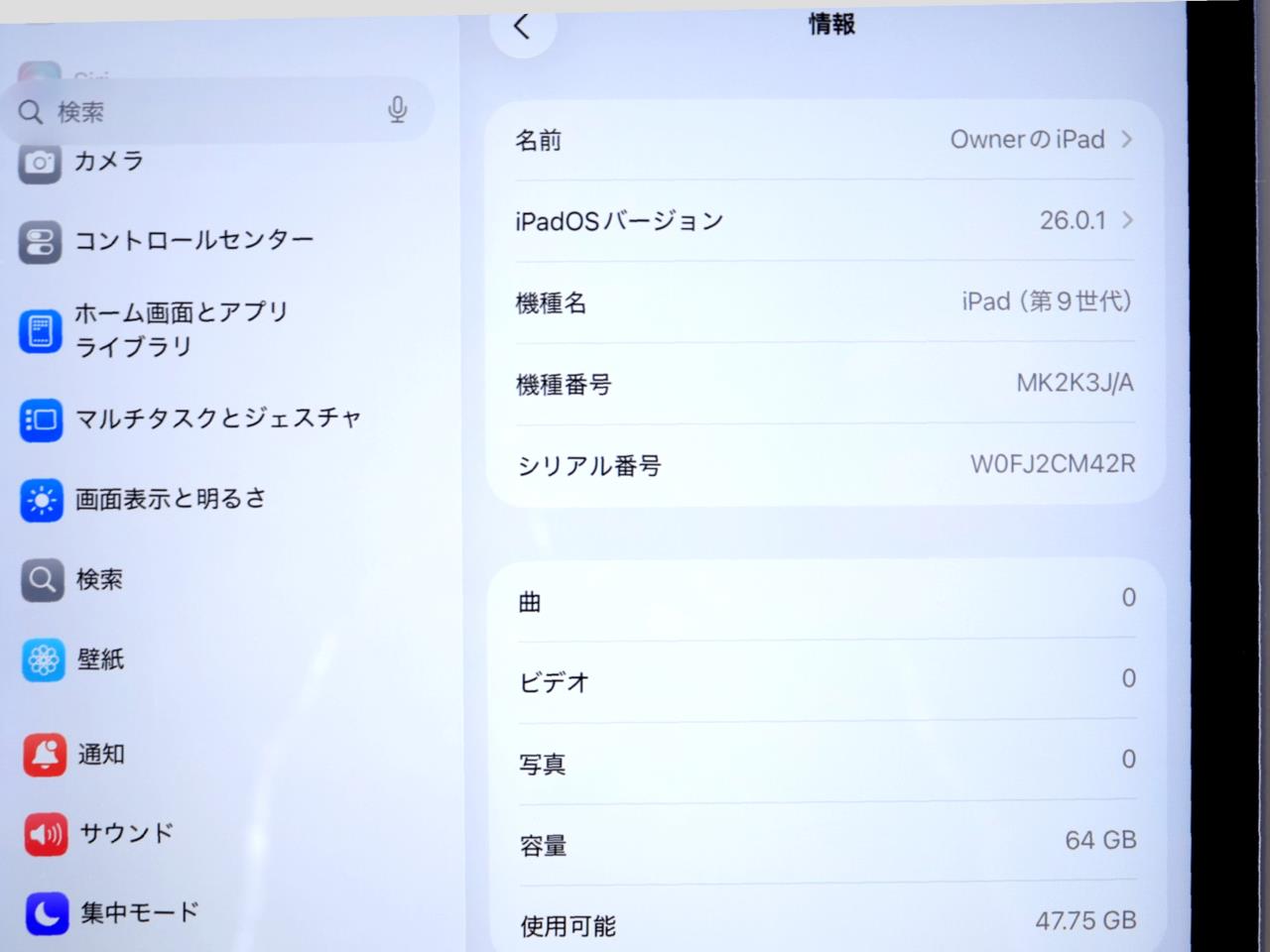 APPLE [USED]u059016 iPad 10.2inch 9th 64GB MK2K3J/A [スペースグレイ] の 商品仕様1: